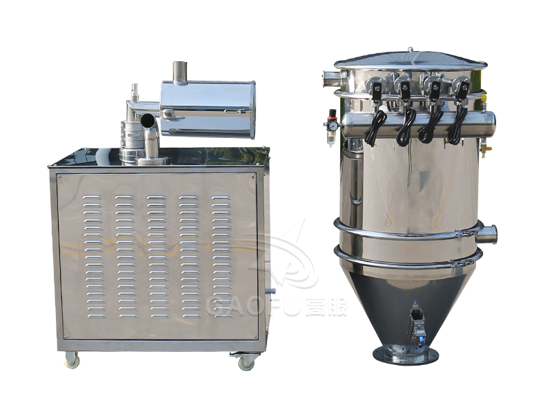 GFZK真空上料机是用真空泵抽气,使吸料嘴进口处及整个好色先生TV软件下载处于一定的真空状态,粉粒料随同外界空气被吸入料嘴,形成料气流,经过吸料管到达料斗,在料斗中进行气、料分离。分离后的物料进入受料设备。输送、放料是通过气动三通阀不断地开、闭来完成的,而气动三通阀的开闭是由控制中心来控制的。 ZKS 真空上料机中装有压缩空气反吹装置,每次放料时,压缩空气脉冲反吹过滤器,把吸附于过滤器表面的粉末打落下来,使吸料能正常运行。